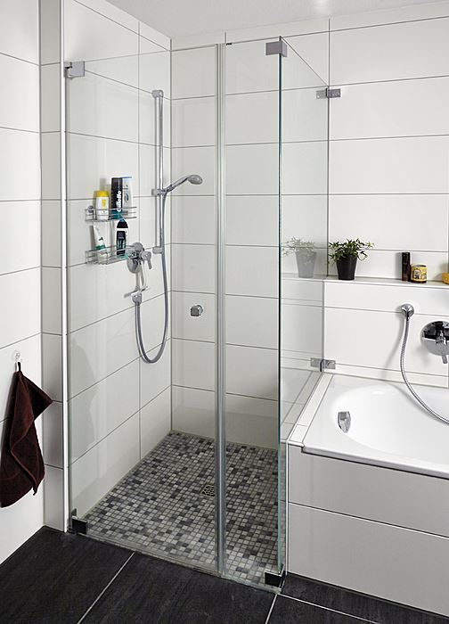 Elegantes Design, Qualität und Funktion – die rahmenlose Dusche Omega verbindet mühelos die unterschiedlichsten Aspekte. Pures Einscheiben-Sicherheitsglas wird von edlen Beschlägen fast schwebend getragen. Zur mühelosen Reinigung und Pflege sind die Beschläge und Griffe innen flächenbündig ins Glas eingearbeitet. Die Echtglasdusche Omega ist besonders für bodengleiche Duschen geeignet. Der Beschlag hebt und senkt die Glastür beim Öffnen sowie Schließen. Das sorgt für Komfort und noch mehr Dichtigkeit. Die Türen pendeln nach innen und außen. Ganz so wie Sie es brauchen. Fragen Sie nach Sonderhöhen, Sonderoberflächen und Sondergläsern.