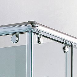 TOPAS schiebt sich nicht in den Vordergrund. Hochwertiges Sicherheitsglas und das stilvolle Profil bilden eine harmonische Einheit. Profil und Beschläge in Silber matt, hochglanzpoliert mit Chromcharakter oder in Sanitärfarben sind der passende Rahmen dazu.